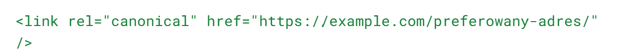 Taki zapis informuje roboty wyszukiwarek, że właśnie ten adres stanowi oryginał, a pozostałe wersje są jego duplikatami.